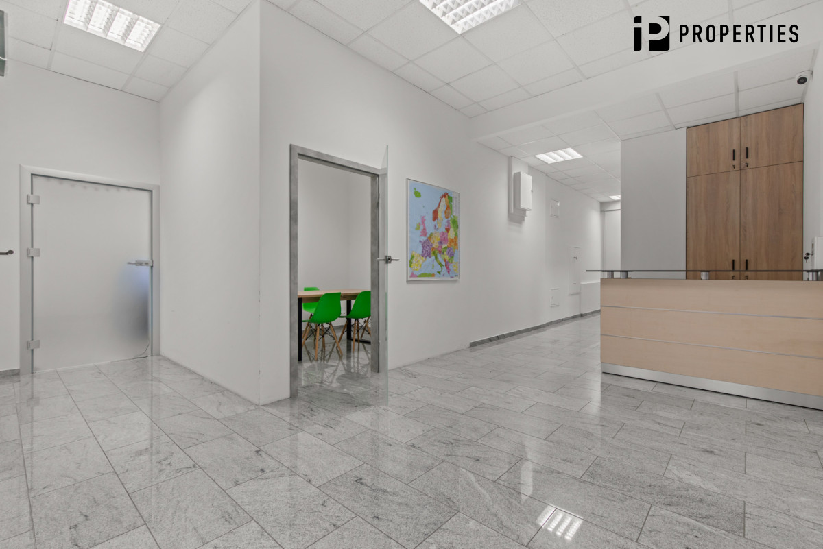 - 182,54 m2 elastycznej powierzchni, aktualnie zaaranżowanej jako pokoje biurowe, recepcja, salki konferencyjne