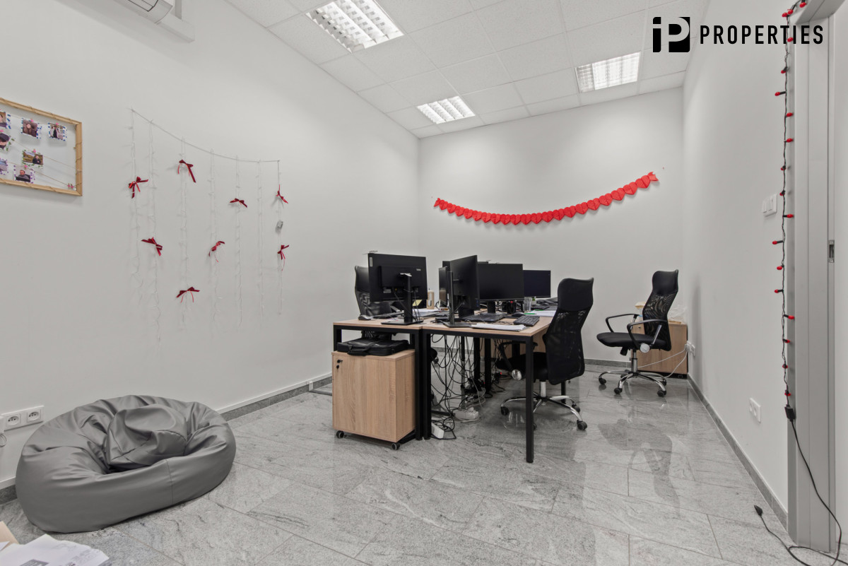Obecnie lokal jest wynajmowany na cele biurowe, firma wynajmująca ma kontrakt do końca stycznia 2026 r. Przestrzeń można jednak szybko dostosować do innej działalności. Elastyczny układ wnętrza pozwala na dowolną aranżację.