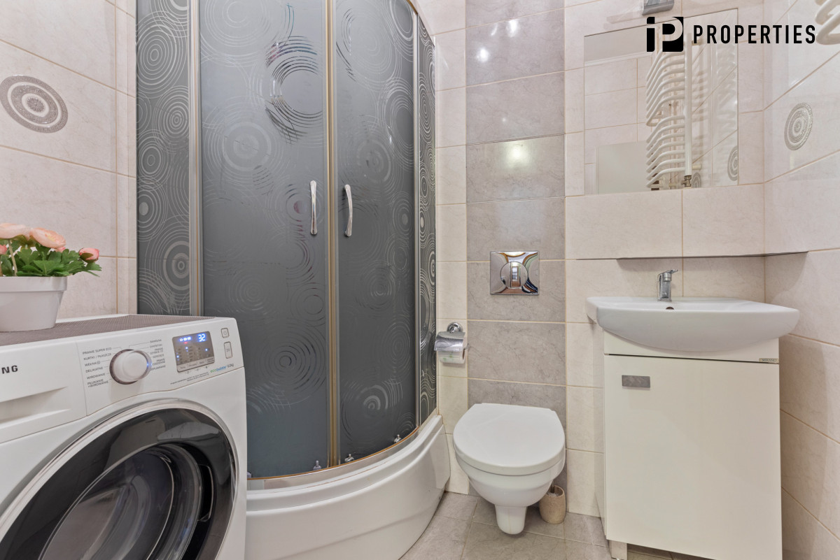 Układ pomieszczeń jest funkcjonalny, dwa oddzielne pokoje dają możliwość wynajęcia np. dla studentów pobliskich uczelni - UKSW i AWF.
