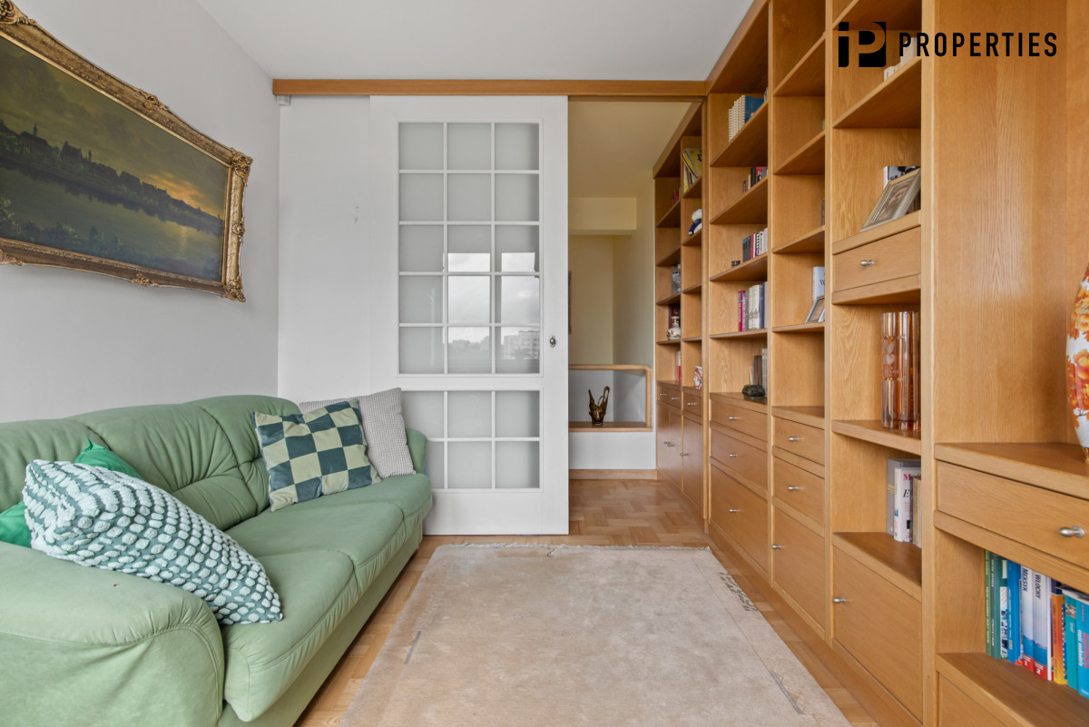 WYKOŃCZENIE: Wysoki standard wykończenia z użyciem materiałów najwyższej jakości, zrealizowany z dbałością o detale i ponadczasowy styl. Zabudowa meblowa w salonie, kuchni, sypialni i bibliotece wg. indywidualnego projektu Na podłodze parkiet jesionowy w bardzo dobrym stanie.