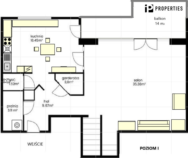 Opis nieruchomości wykonany przez biuro sprzedaży IP Properties, sporządzany jest na podstawie informacji uzyskanych od właściciela, może podlegać aktualizacji i nie stanowi oferty określonej w art. 66 i następnych K.C.