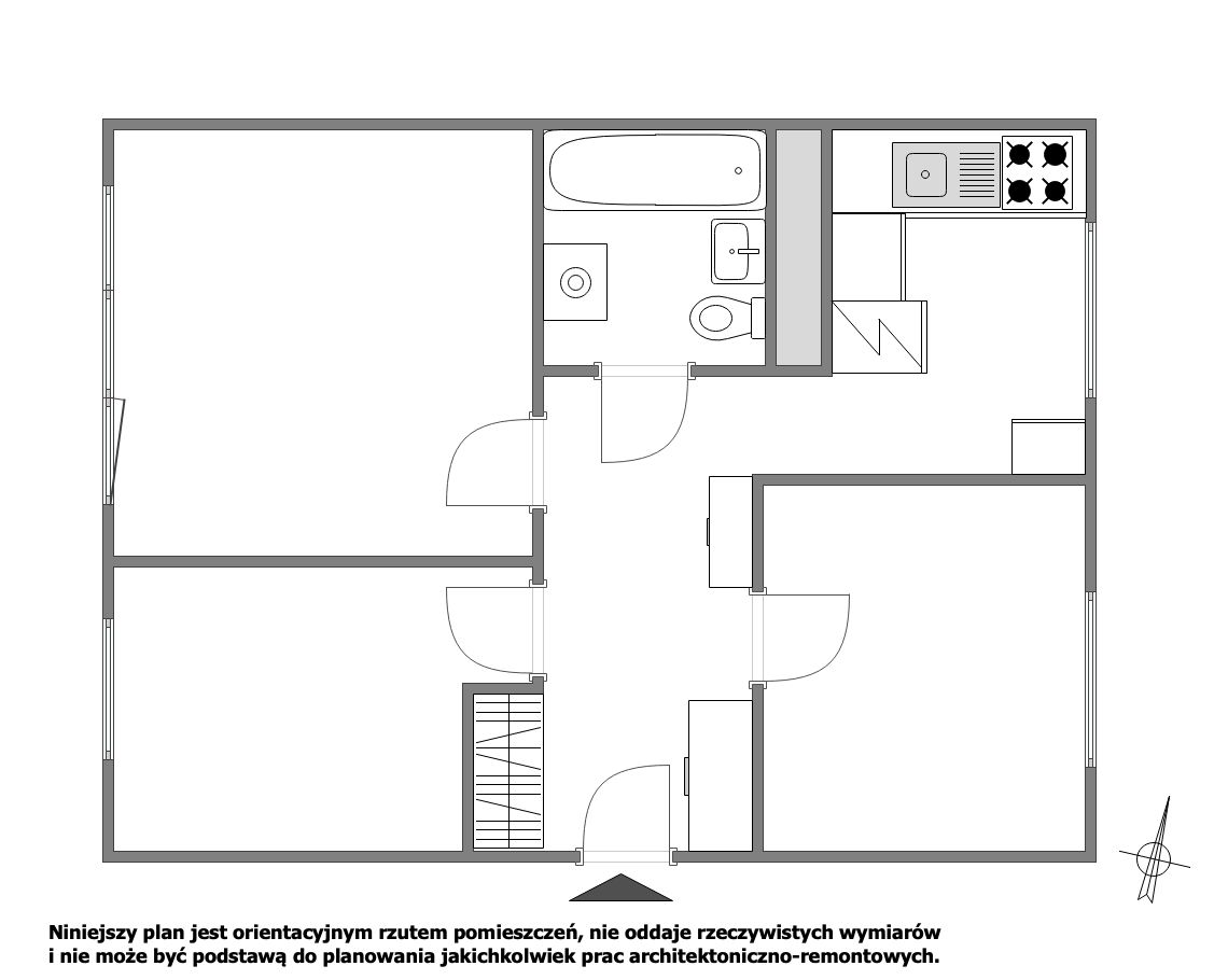 Nieruchomość znajduje się na parterze, do mieszkania przynależy duża piwnica (około 7 m2). Mieszkanie zostało jedynie pomalowane po opróżnieniu z mebli, wymaga remontu w zależności od potrzeb i oczekiwań nowego Właściciela. W pokojach dość dobrze zachowany parkiet dębowy - można wycyklinować, na ścianach w pokojach i przedpokoju położone kilka lat temu gładzie.