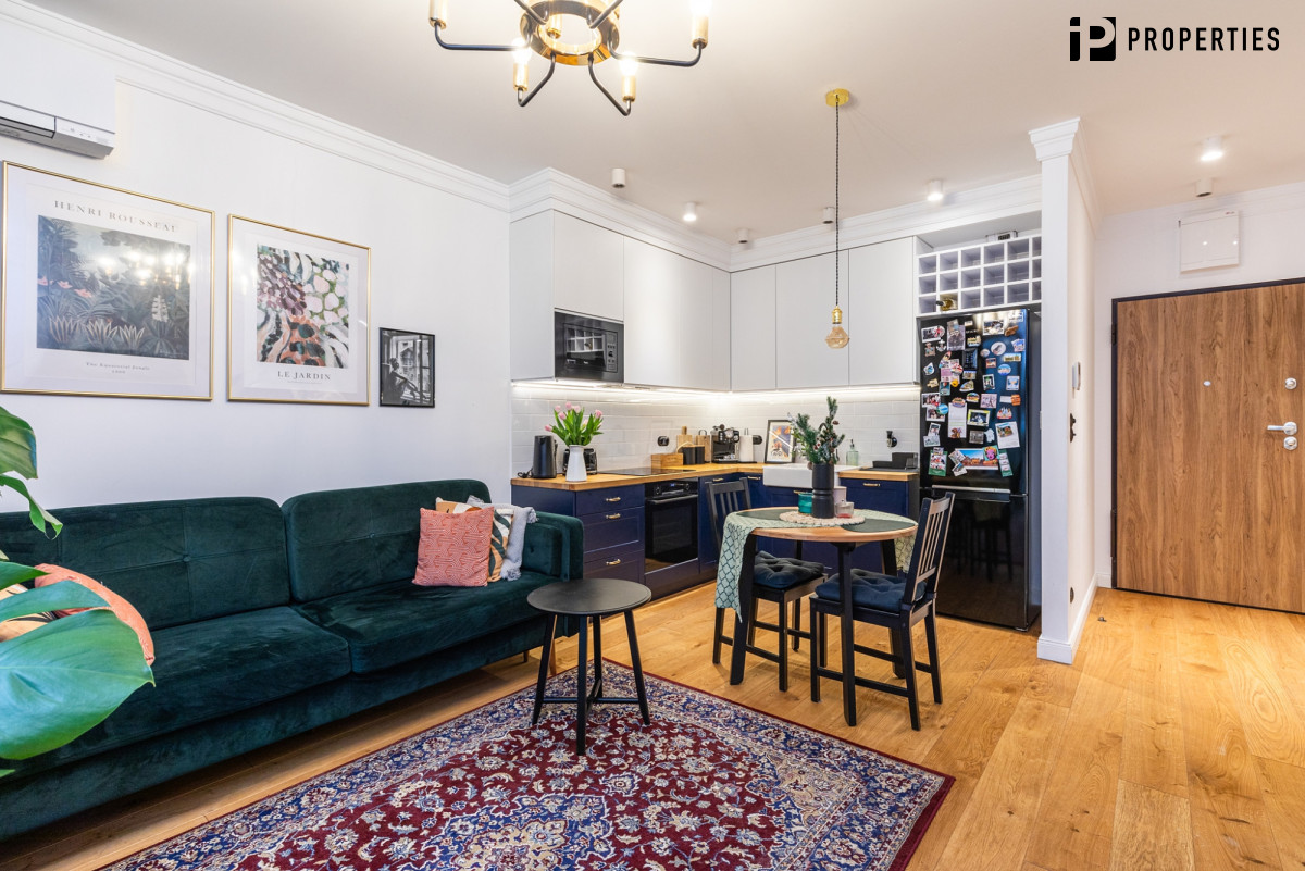 Mieszkanie jest wykończone w wysokim standardzie, w pełni wyposażone we wszystkie meble, sprzęty AGD (chłodziarko-zamrażarka, pralka, zmywarka, piekarnik, płyta) oraz sprzęty domowe i kuchenne, w łazience wanna z prysznicem, w przedpokoju pojemna szafy w zabudowie, dodatkowa pojemna szafa w sypialni, rozkładana sofa w salonie pozwoli w razie potrzeby przenocować gości :)
