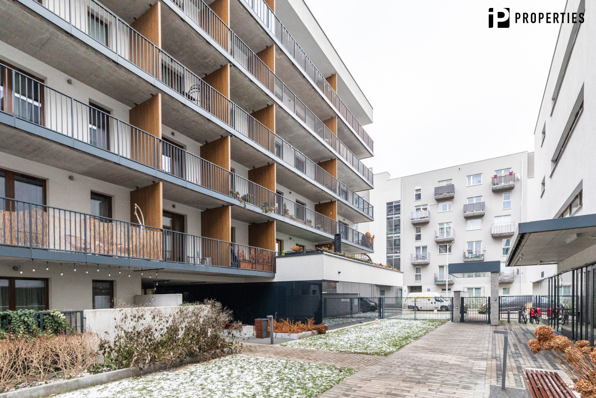 Niska zabudowa mieszkalna, jasne elewacje, przestronne tarasy stanowiące komfortowe strefy wypoczynku mieszkańców. Dobrze zaprojektowane przestrzenie między budynkami, zieleń, bogata infrastruktura oraz bardzo dobra komunikacja z Centrum sprawia, że mieszka się tutaj naprawdę przyjemnie.